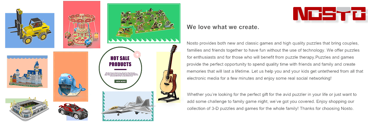 Nosto provides both new and classic games and high quality puzzles that bring couples, families and friends together to have fun without the use oftechnology. We offer puzzles for enthusiasts and for those who will benefit from puzzle therapy.Puzzles and games provide the perfect opportunity to spend quality time with friends and family and create memories that will last a lifetime. Let us help you and your kids get untethered from all that electronic media for a few minutes and enjoy some real social networking!