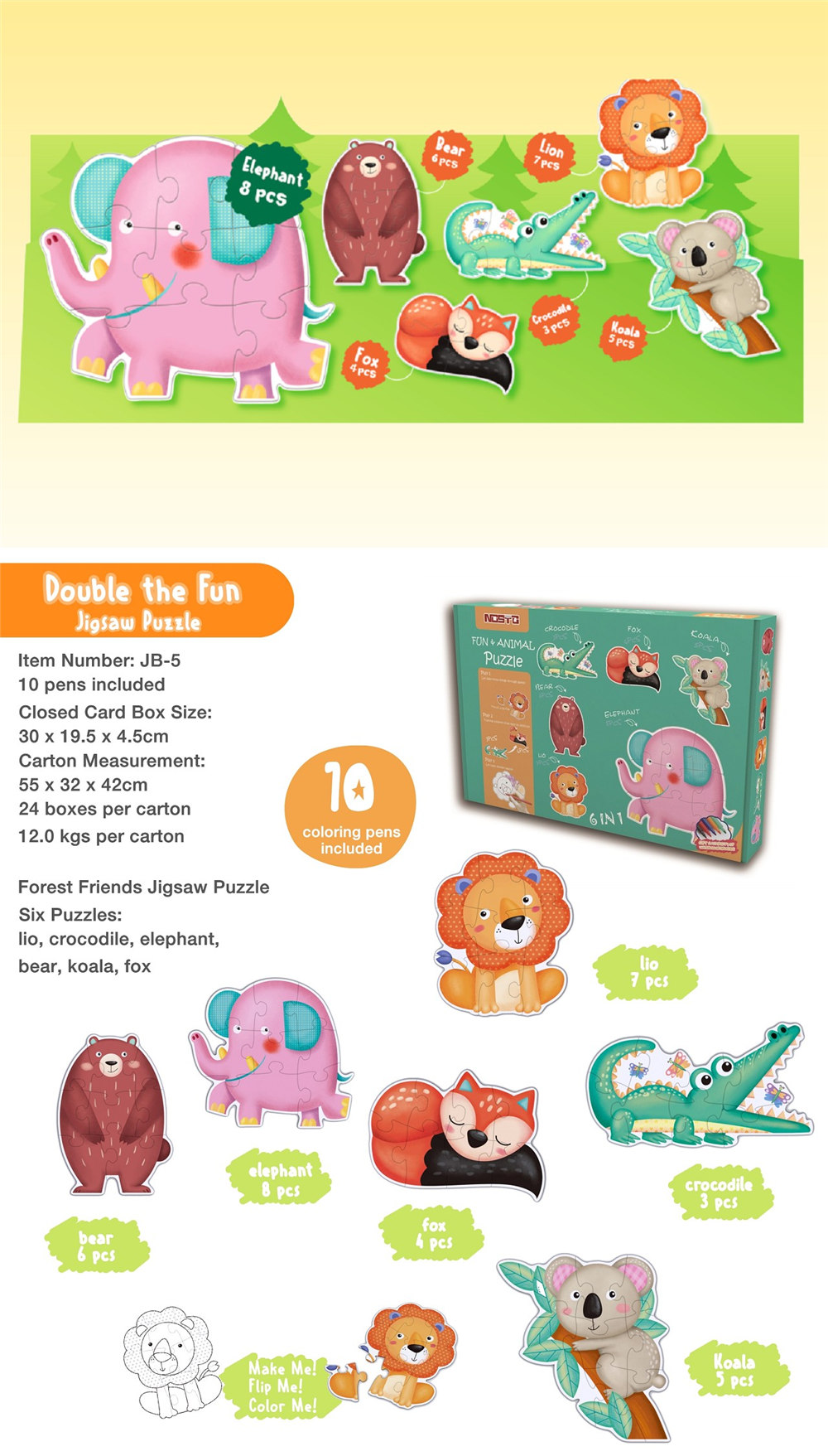 BSCI Printing Factory Supplies Creative Play Forest Friend Chunky Puzzles for Toddlers 6 in 1 Chunky Puzzle Set for Kids – JB-5
