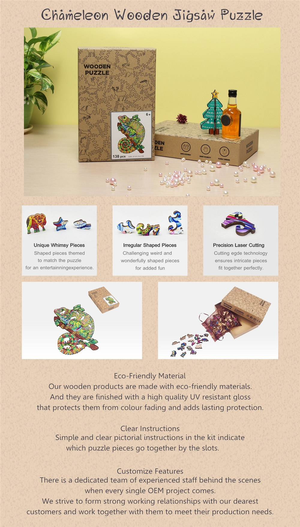 Unique Shaped Colorful Chameleon Animal Wooden Jigsaw Puzzle for Adults – W1003
